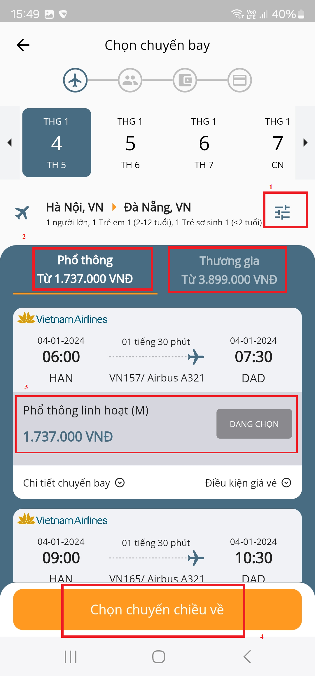 Chọn chuyến bay